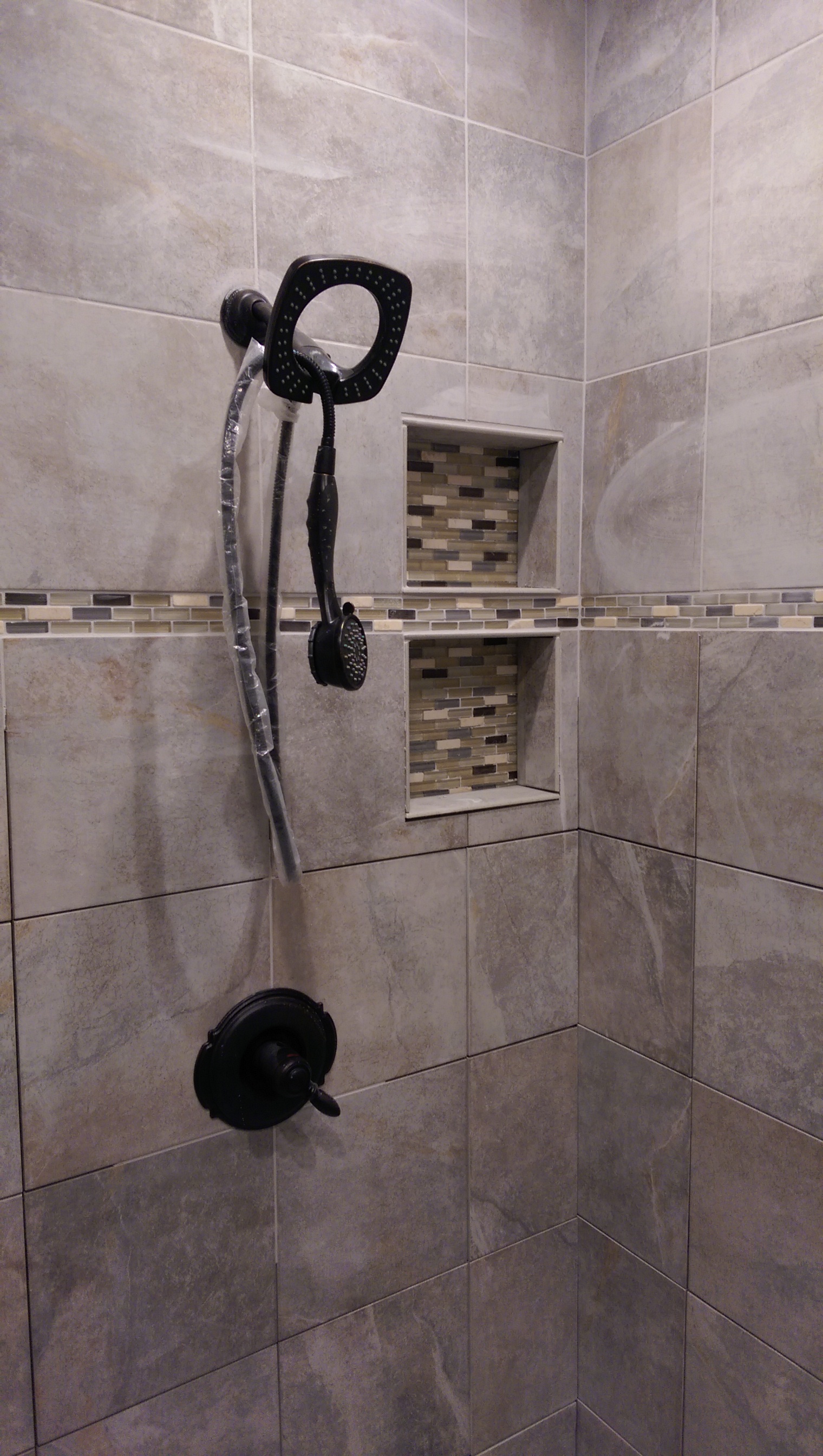 Shower tile in the master going up.