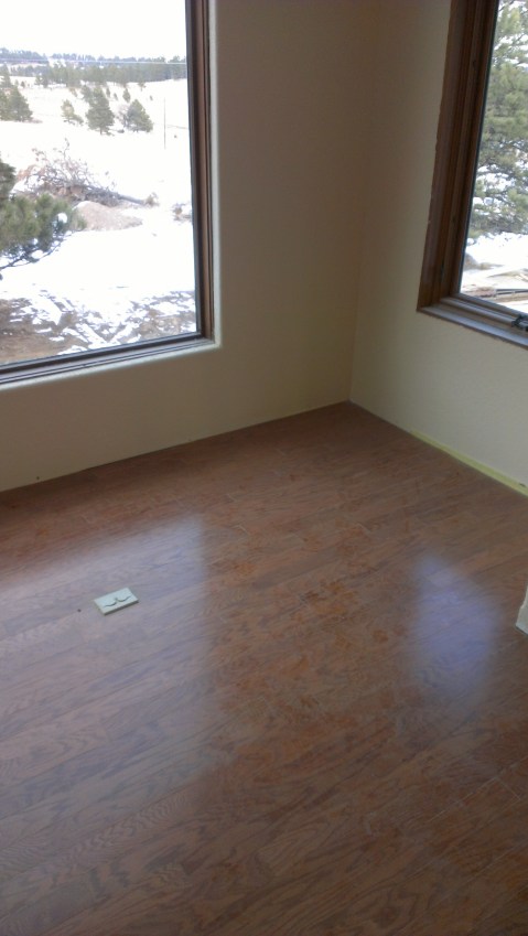 This is a closer look at the wood flooring in the “Reading Room” above the front entry of the house. Looking down on the floor we finished yesterday… Which is now covered in boxes for the kitchen cabinets! I should have been faster in taking pictures! They have been putting together cabinets and laying everything […]